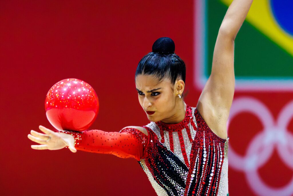 Beatriz Vieira (SP) levou a medalha de ouro na bola da ginástica rítmica dos Jogos da juventude CAIXA Brasília 2025. Foto: Abelardo Mendes Jr/COB
